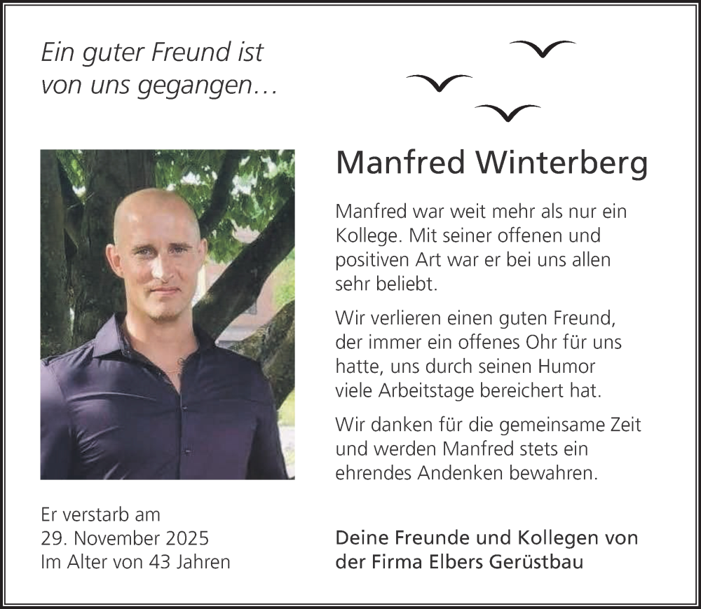 Hier finden Sie alle Traueranzeigen aus der Zeitung, die bisher für Manfred Winterberg erschienen sind. Weitere Traueranzeigen, die in der Zeitung erscheinen, werden hier ebenfalls aufgelistet