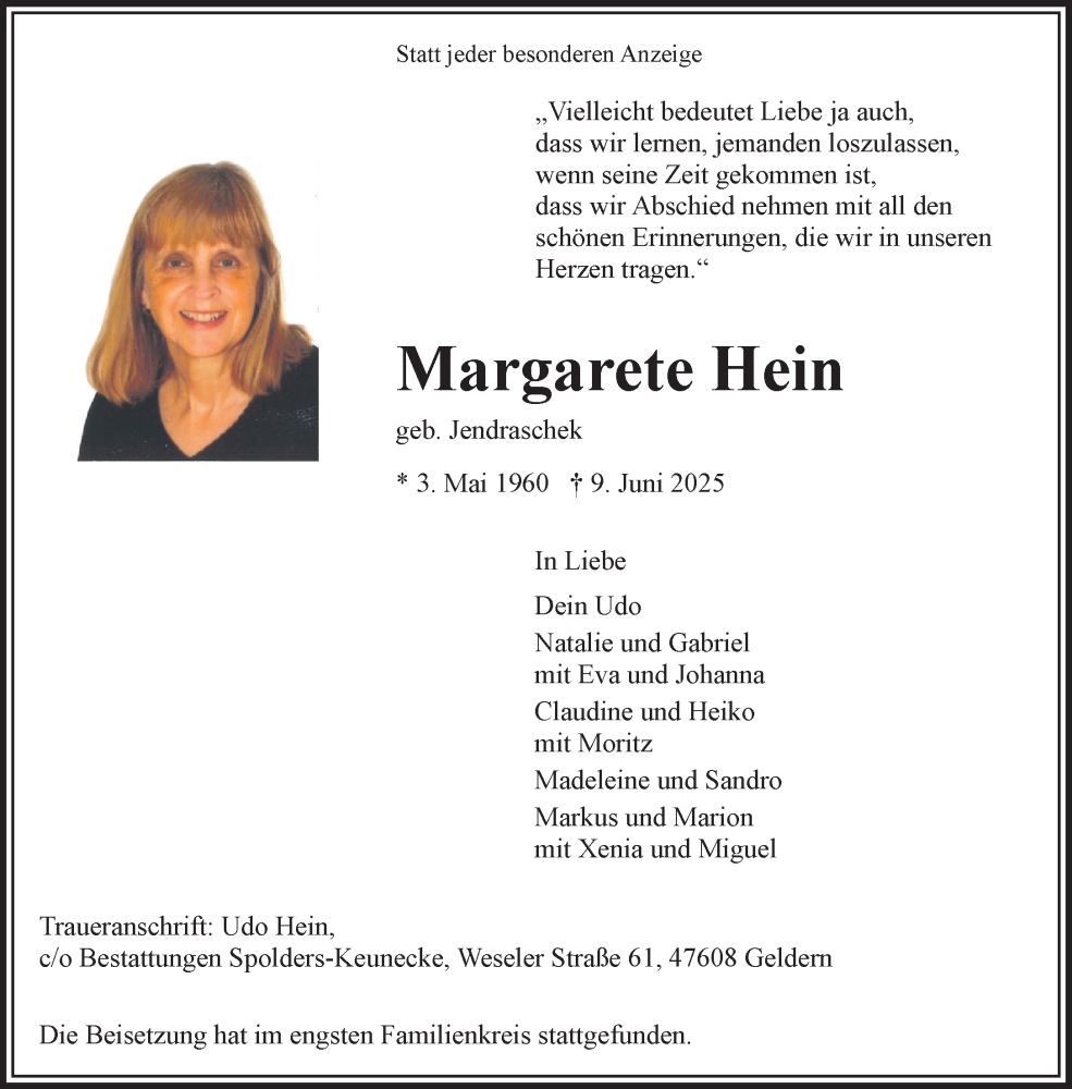 Hier finden Sie alle Traueranzeigen aus der Zeitung, die bisher für Margarete Hein erschienen sind. Weitere Traueranzeigen, die in der Zeitung erscheinen, werden hier ebenfalls aufgelistet