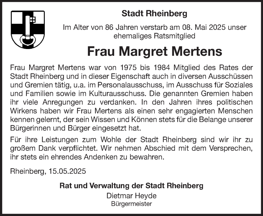 Hier finden Sie alle Traueranzeigen aus der Zeitung, die bisher für Margret Mertens erschienen sind. Weitere Traueranzeigen, die in der Zeitung erscheinen, werden hier ebenfalls aufgelistet