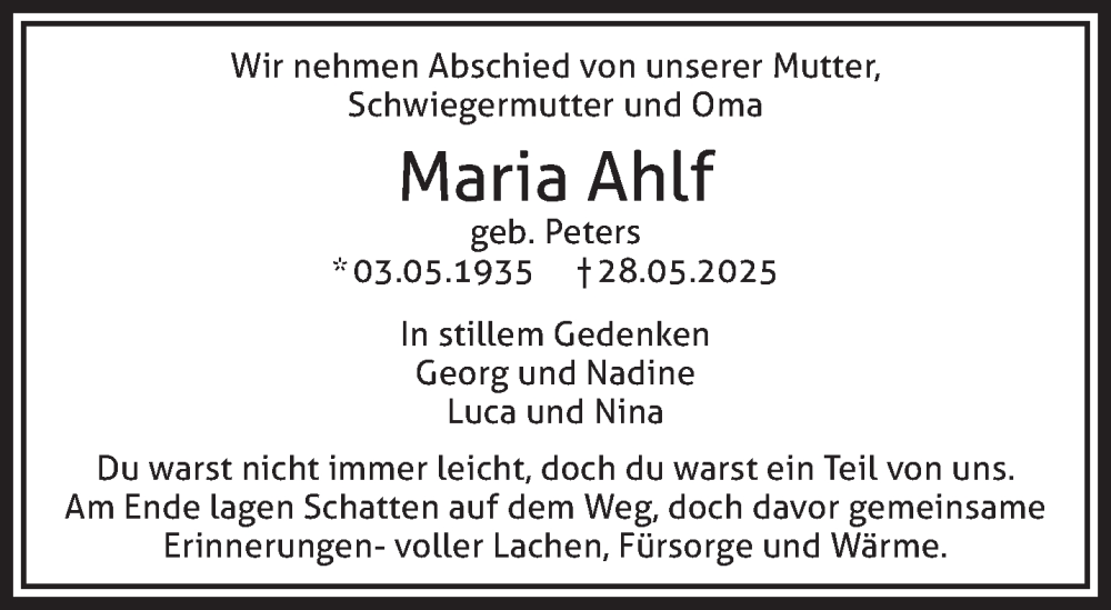 Hier finden Sie alle Traueranzeigen aus der Zeitung, die bisher für Maria Ahlf erschienen sind. Weitere Traueranzeigen, die in der Zeitung erscheinen, werden hier ebenfalls aufgelistet