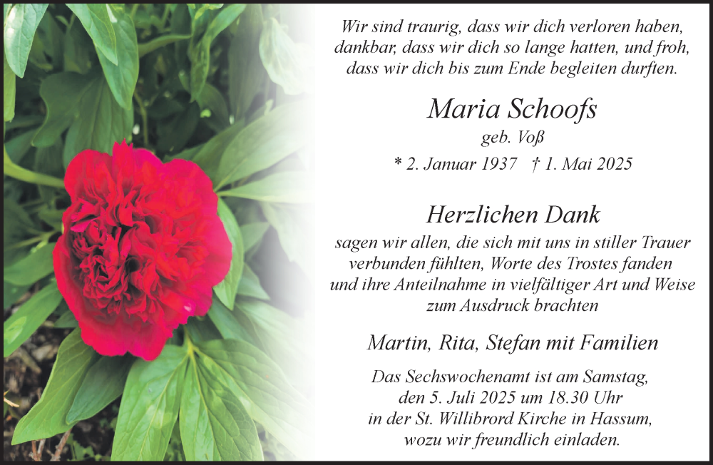 Hier finden Sie alle Traueranzeigen aus der Zeitung, die bisher für Maria Schoofs erschienen sind. Weitere Traueranzeigen, die in der Zeitung erscheinen, werden hier ebenfalls aufgelistet