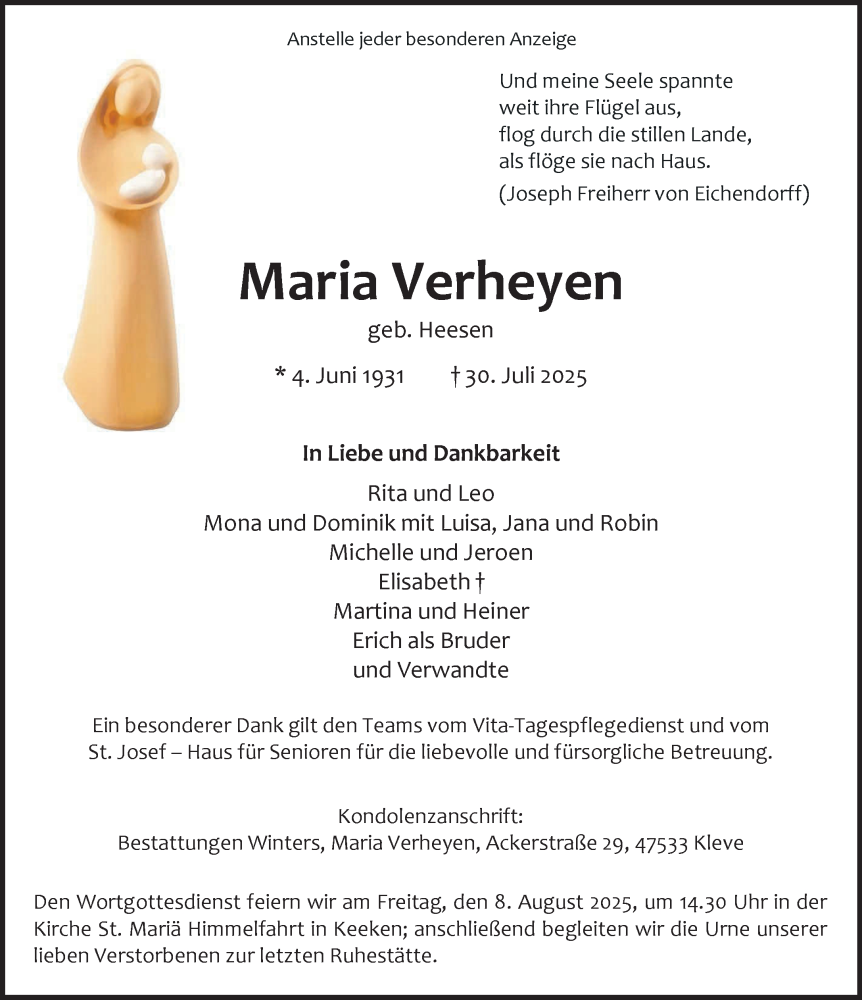 Hier finden Sie alle Traueranzeigen aus der Zeitung, die bisher für Maria Verheyen erschienen sind. Weitere Traueranzeigen, die in der Zeitung erscheinen, werden hier ebenfalls aufgelistet