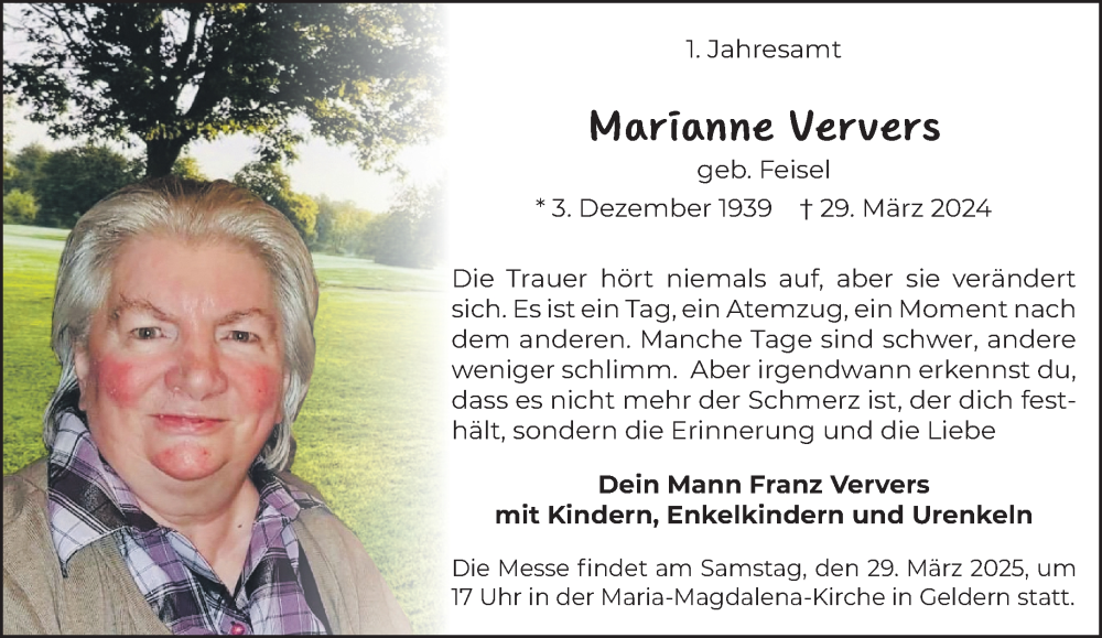 Hier finden Sie alle Traueranzeigen aus der Zeitung, die bisher für Marianne Ververs erschienen sind. Weitere Traueranzeigen, die in der Zeitung erscheinen, werden hier ebenfalls aufgelistet