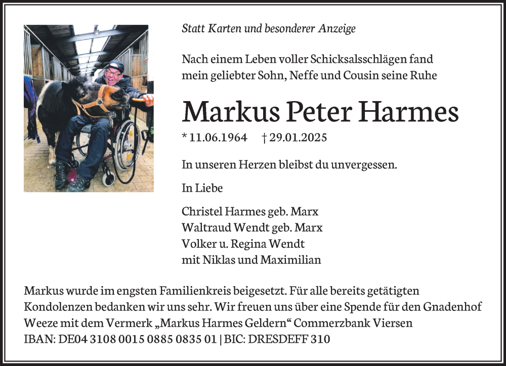 Hier finden Sie alle Traueranzeigen aus der Zeitung, die bisher für Markus Peter Harmes erschienen sind. Weitere Traueranzeigen, die in der Zeitung erscheinen, werden hier ebenfalls aufgelistet