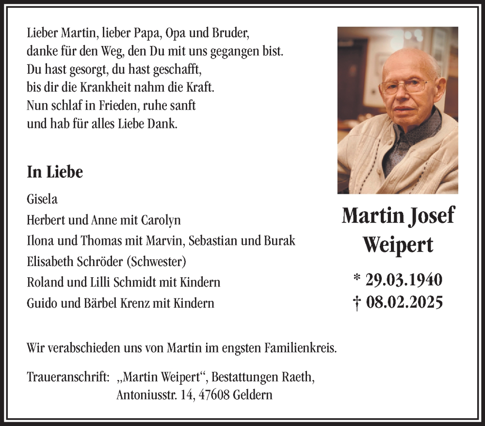 Hier finden Sie alle Traueranzeigen aus der Zeitung, die bisher für Martin Josef Weipert erschienen sind. Weitere Traueranzeigen, die in der Zeitung erscheinen, werden hier ebenfalls aufgelistet