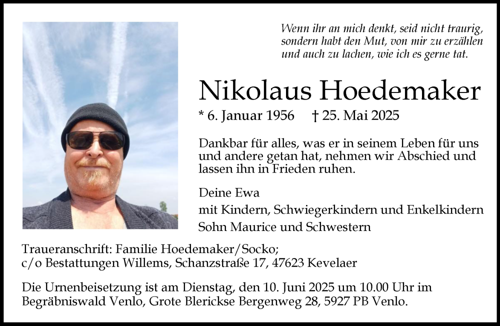 Hier finden Sie alle Traueranzeigen aus der Zeitung, die bisher für Nikolaus Hoedemaker erschienen sind. Weitere Traueranzeigen, die in der Zeitung erscheinen, werden hier ebenfalls aufgelistet