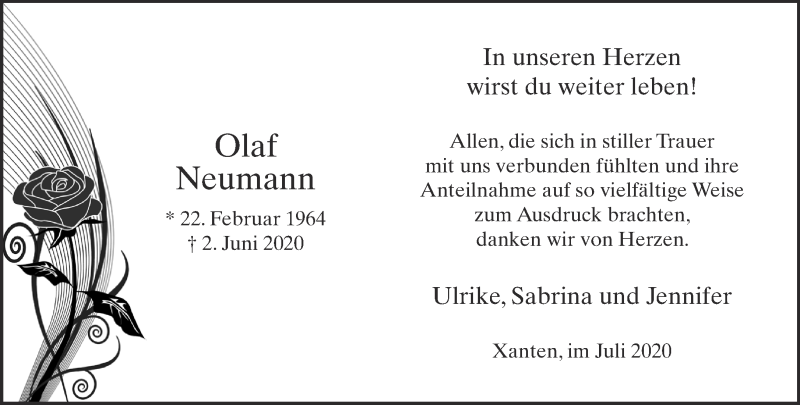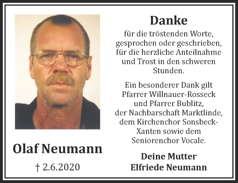 Hier finden Sie alle Traueranzeigen aus der Zeitung, die bisher für Olaf Neumann erschienen sind. Weitere Traueranzeigen, die in der Zeitung erscheinen, werden hier ebenfalls aufgelistet