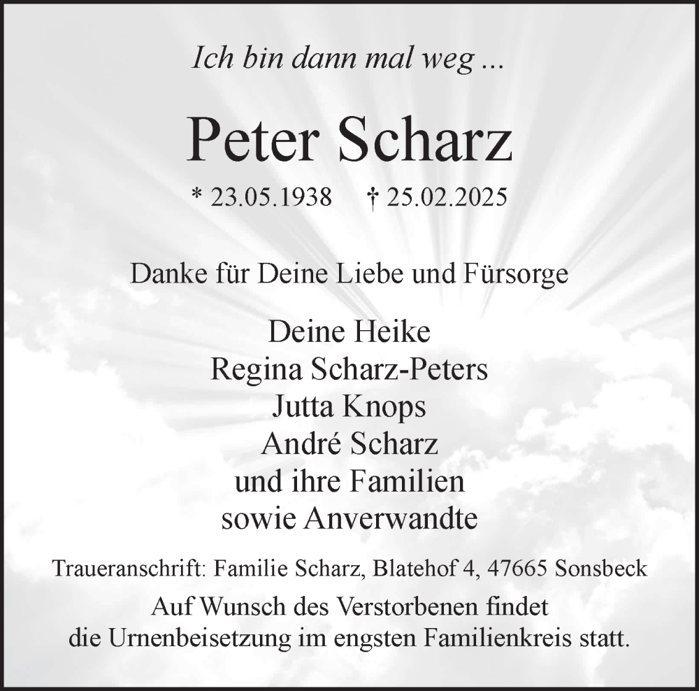 Hier finden Sie alle Traueranzeigen aus der Zeitung, die bisher für Peter Scharz erschienen sind. Weitere Traueranzeigen, die in der Zeitung erscheinen, werden hier ebenfalls aufgelistet