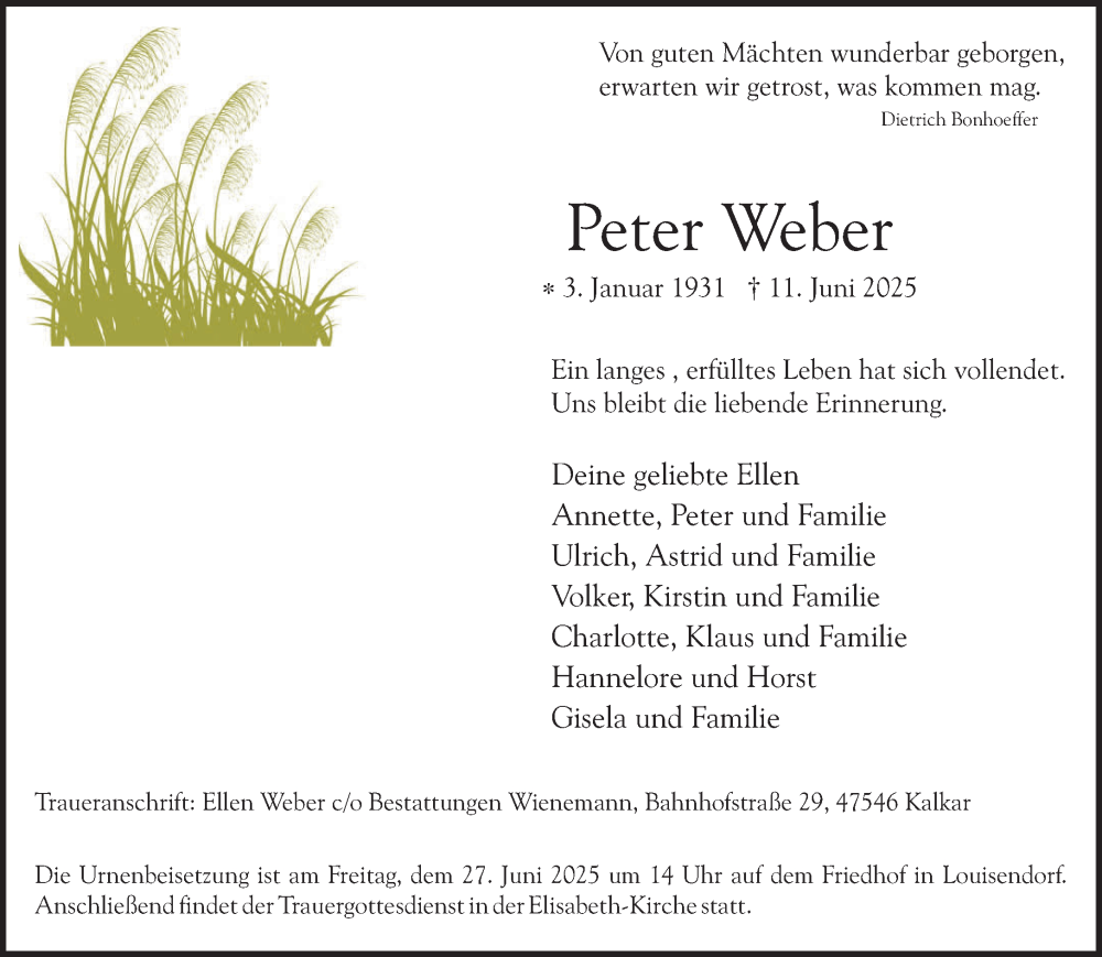 Hier finden Sie alle Traueranzeigen aus der Zeitung, die bisher für Peter Weber erschienen sind. Weitere Traueranzeigen, die in der Zeitung erscheinen, werden hier ebenfalls aufgelistet