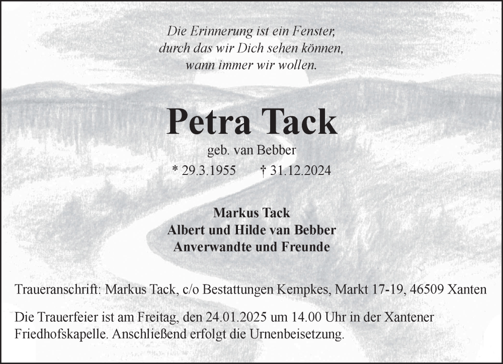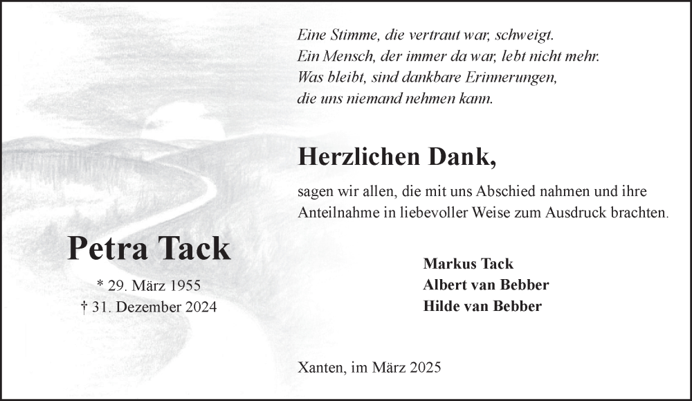 Hier finden Sie alle Traueranzeigen aus der Zeitung, die bisher für Petra Tack erschienen sind. Weitere Traueranzeigen, die in der Zeitung erscheinen, werden hier ebenfalls aufgelistet