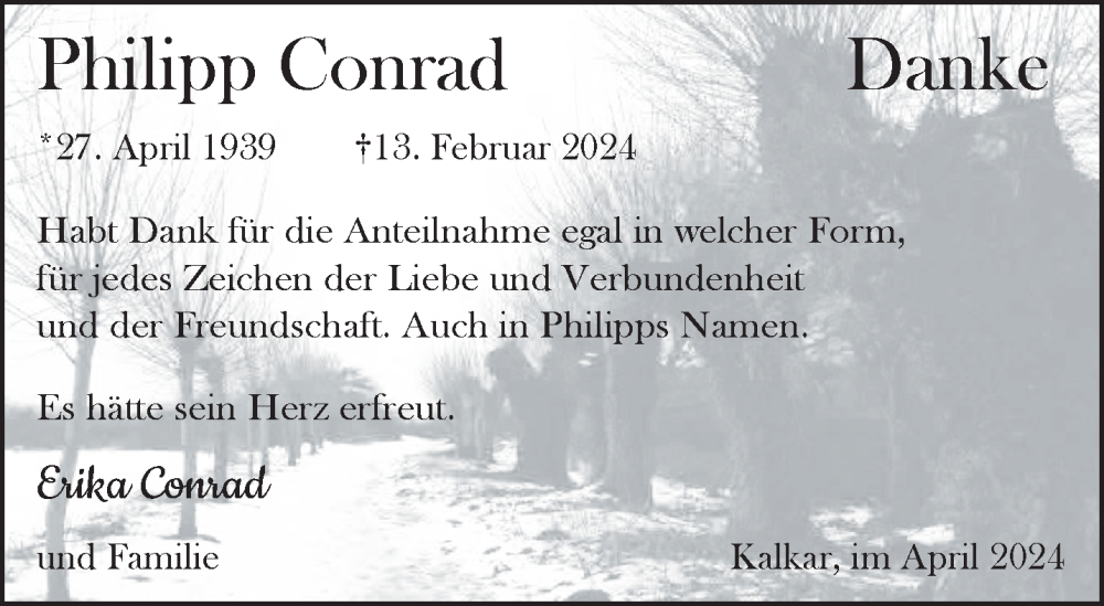 Hier finden Sie alle Traueranzeigen aus der Zeitung, die bisher für Philipp Conrad erschienen sind. Weitere Traueranzeigen, die in der Zeitung erscheinen, werden hier ebenfalls aufgelistet