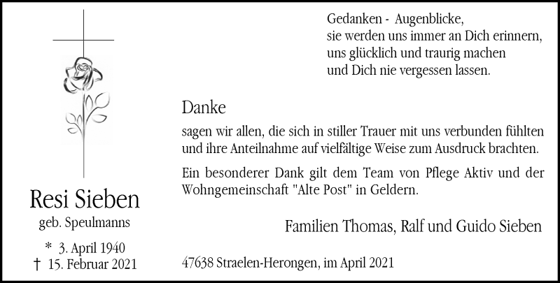 Hier finden Sie alle Traueranzeigen aus der Zeitung, die bisher für Resi Sieben erschienen sind. Weitere Traueranzeigen, die in der Zeitung erscheinen, werden hier ebenfalls aufgelistet