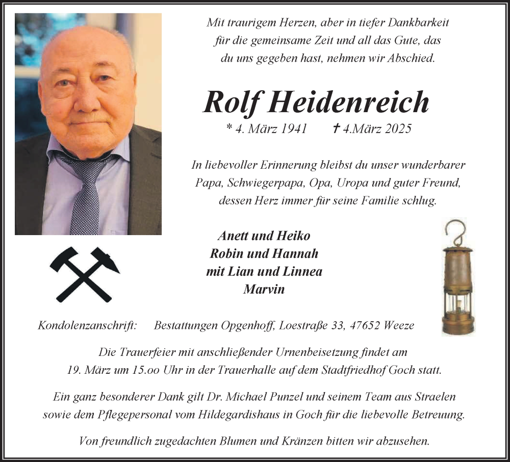 Hier finden Sie alle Traueranzeigen aus der Zeitung, die bisher für Rolf Heidenreich erschienen sind. Weitere Traueranzeigen, die in der Zeitung erscheinen, werden hier ebenfalls aufgelistet