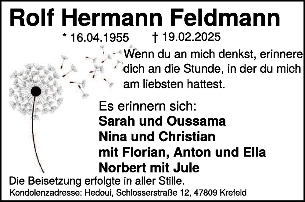Hier finden Sie alle Traueranzeigen aus der Zeitung, die bisher für Rolf Hermann Feldmann erschienen sind. Weitere Traueranzeigen, die in der Zeitung erscheinen, werden hier ebenfalls aufgelistet