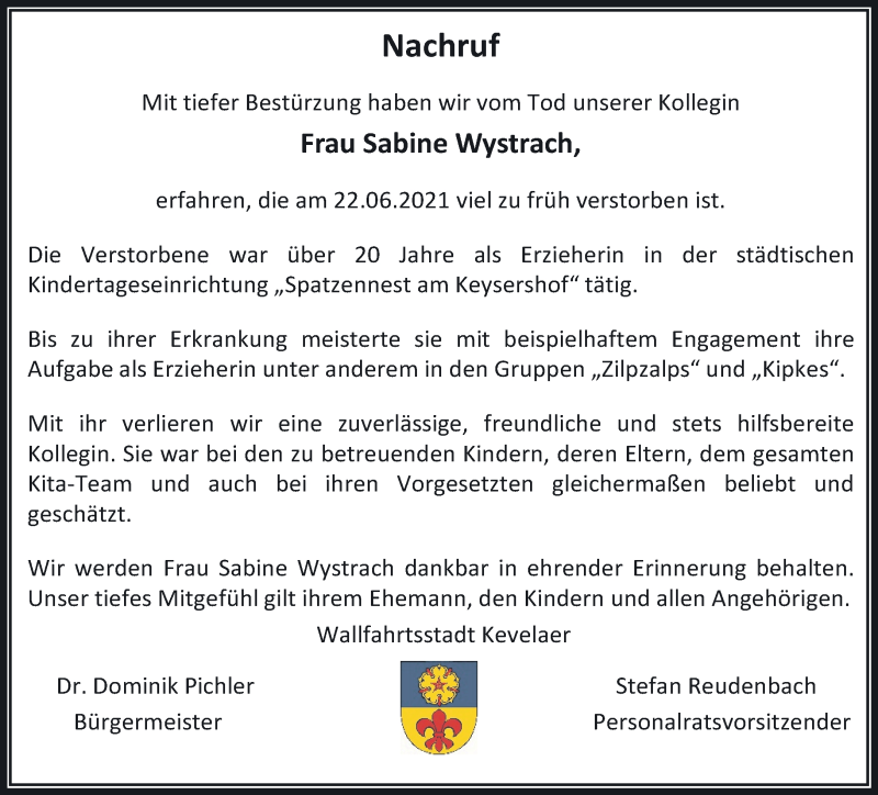 Hier finden Sie alle Traueranzeigen aus der Zeitung, die bisher für Sabine Wystrach erschienen sind. Weitere Traueranzeigen, die in der Zeitung erscheinen, werden hier ebenfalls aufgelistet