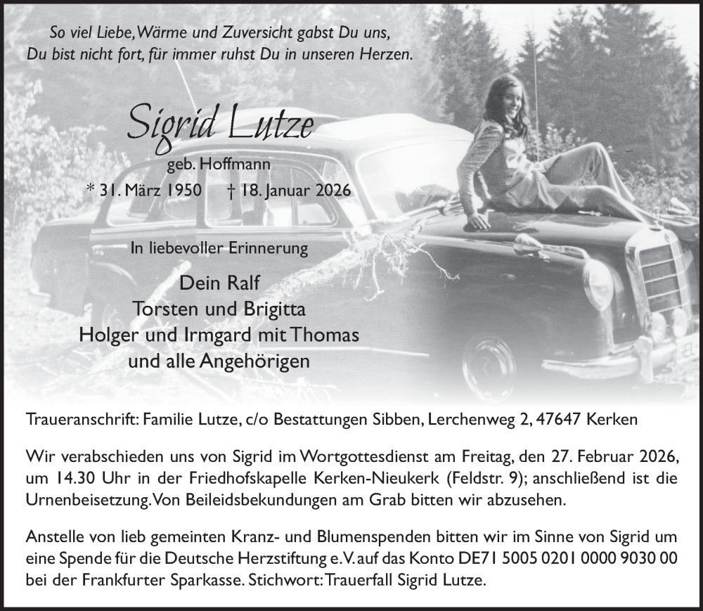 Hier finden Sie alle Traueranzeigen aus der Zeitung, die bisher für Sigrid Lutze erschienen sind. Weitere Traueranzeigen, die in der Zeitung erscheinen, werden hier ebenfalls aufgelistet