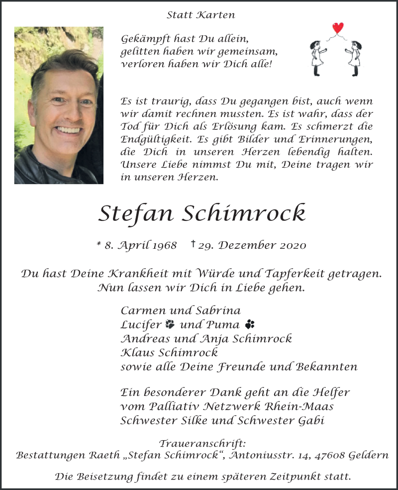 Hier finden Sie alle Traueranzeigen aus der Zeitung, die bisher für Stefan Schimrock erschienen sind. Weitere Traueranzeigen, die in der Zeitung erscheinen, werden hier ebenfalls aufgelistet