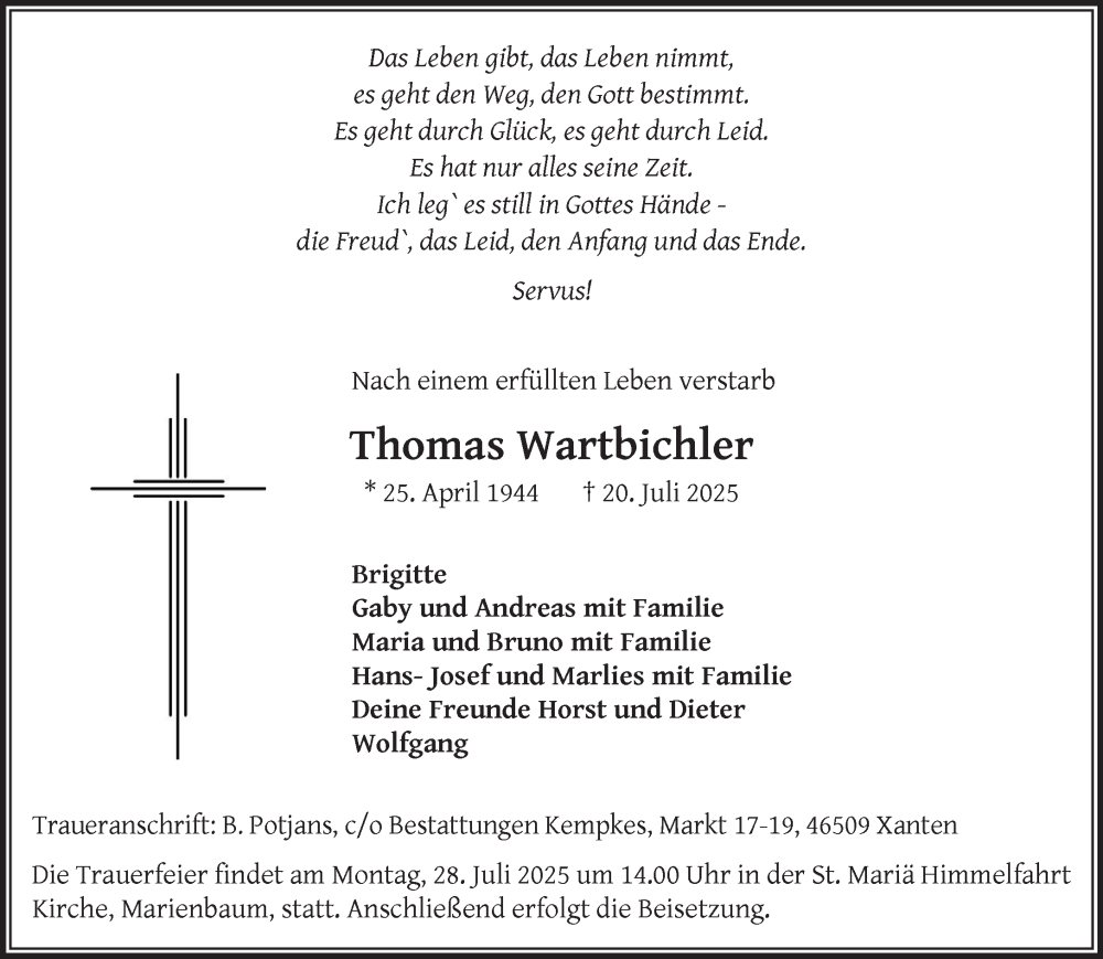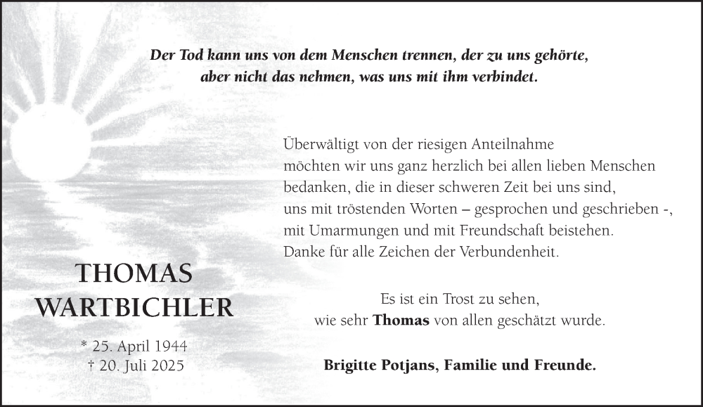 Hier finden Sie alle Traueranzeigen aus der Zeitung, die bisher für Thomas Wartbichler erschienen sind. Weitere Traueranzeigen, die in der Zeitung erscheinen, werden hier ebenfalls aufgelistet