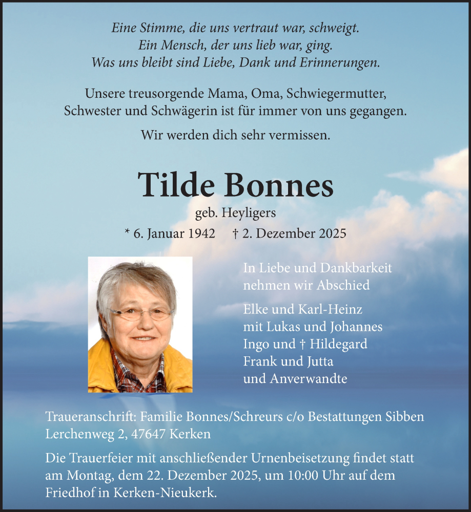 Hier finden Sie alle Traueranzeigen aus der Zeitung, die bisher für Tilde Bonnes erschienen sind. Weitere Traueranzeigen, die in der Zeitung erscheinen, werden hier ebenfalls aufgelistet
