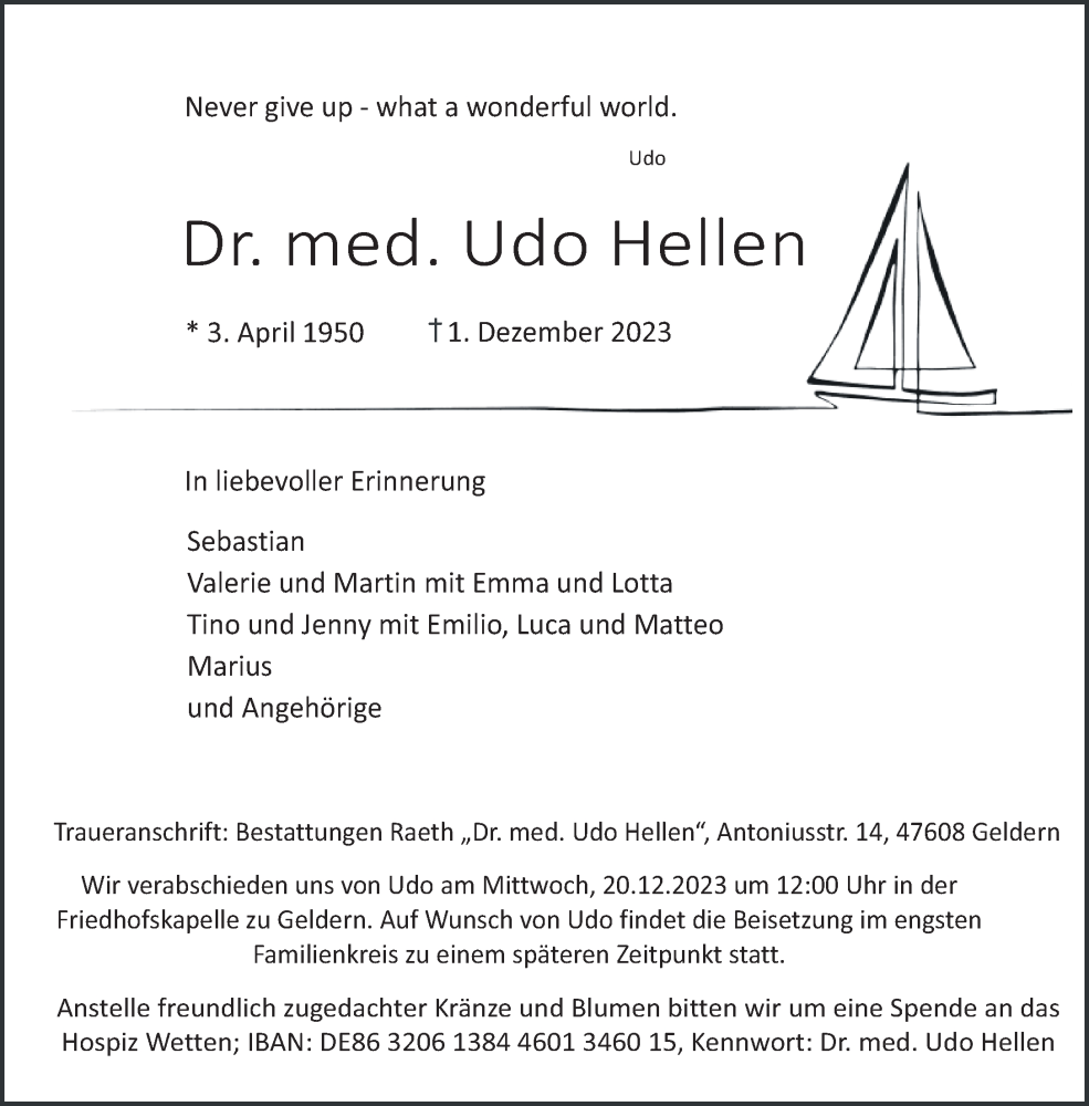 Hier finden Sie alle Traueranzeigen aus der Zeitung, die bisher für Udo Hellen erschienen sind. Weitere Traueranzeigen, die in der Zeitung erscheinen, werden hier ebenfalls aufgelistet