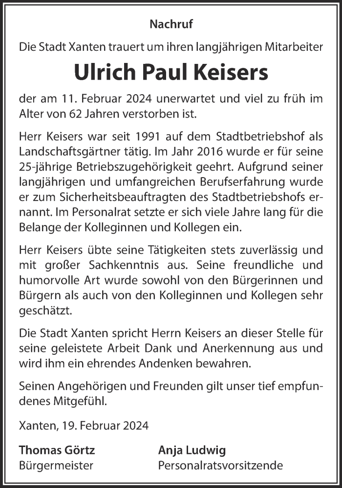 Hier finden Sie alle Traueranzeigen aus der Zeitung, die bisher für Ulrich Paul Keisers erschienen sind. Weitere Traueranzeigen, die in der Zeitung erscheinen, werden hier ebenfalls aufgelistet