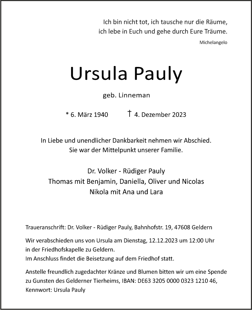 Hier finden Sie alle Traueranzeigen aus der Zeitung, die bisher für Ursula Pauly erschienen sind. Weitere Traueranzeigen, die in der Zeitung erscheinen, werden hier ebenfalls aufgelistet