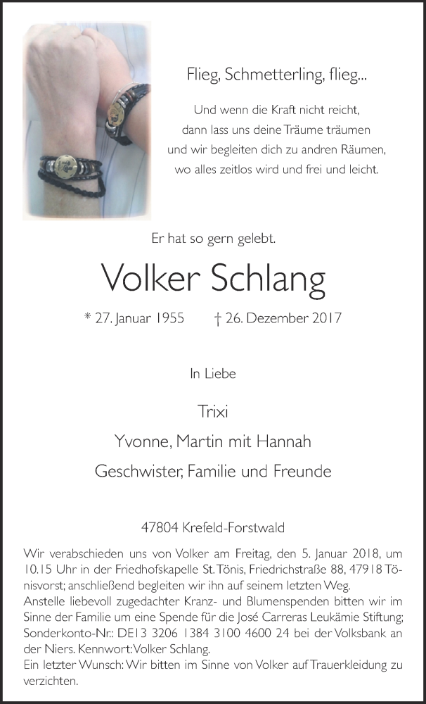 Hier finden Sie alle Traueranzeigen aus der Zeitung, die bisher für Volker Schlang erschienen sind. Weitere Traueranzeigen, die in der Zeitung erscheinen, werden hier ebenfalls aufgelistet