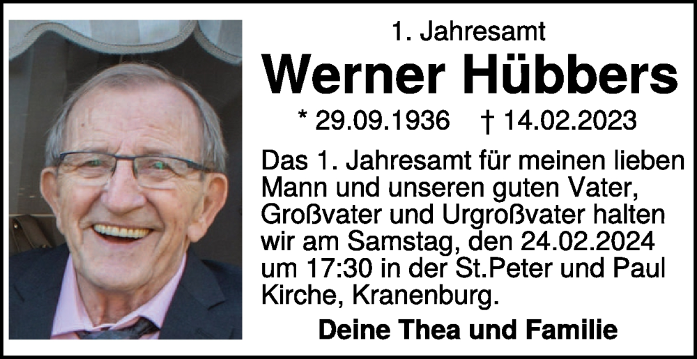 Hier finden Sie alle Traueranzeigen aus der Zeitung, die bisher für Werner Hübbers erschienen sind. Weitere Traueranzeigen, die in der Zeitung erscheinen, werden hier ebenfalls aufgelistet
