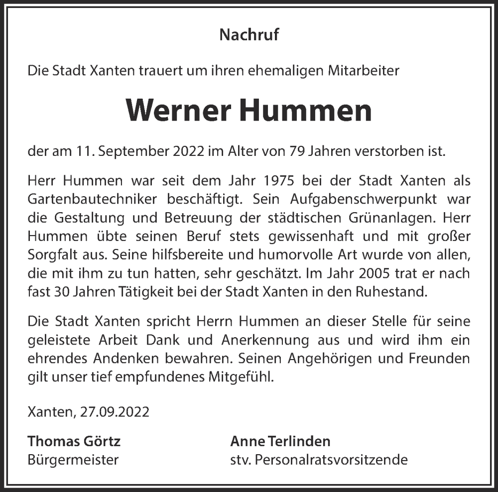 Hier finden Sie alle Traueranzeigen aus der Zeitung, die bisher für Werner Hummen erschienen sind. Weitere Traueranzeigen, die in der Zeitung erscheinen, werden hier ebenfalls aufgelistet