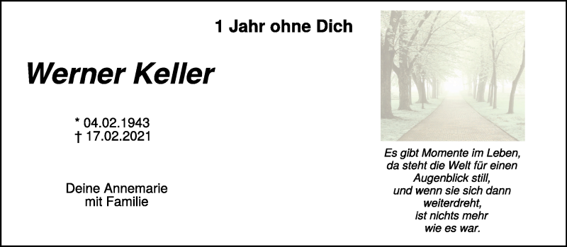 Hier finden Sie alle Traueranzeigen aus der Zeitung, die bisher für Werner Keller erschienen sind. Weitere Traueranzeigen, die in der Zeitung erscheinen, werden hier ebenfalls aufgelistet