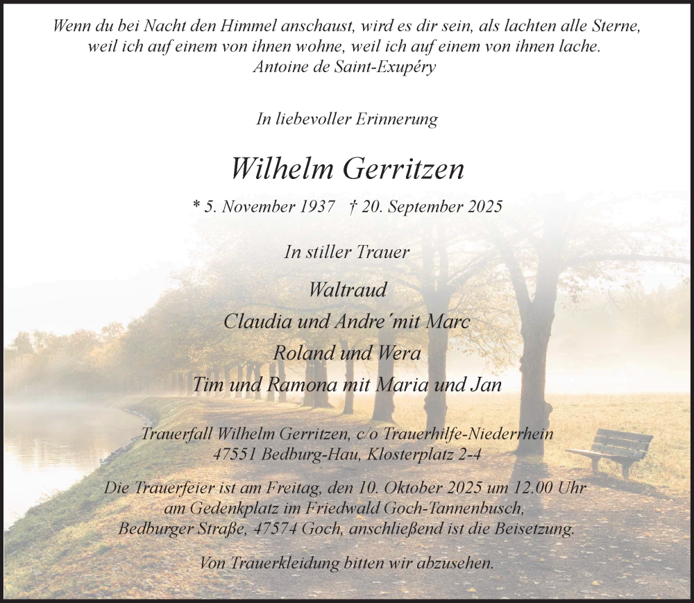 Hier finden Sie alle Traueranzeigen aus der Zeitung, die bisher für Wilhelm Gerritzen erschienen sind. Weitere Traueranzeigen, die in der Zeitung erscheinen, werden hier ebenfalls aufgelistet