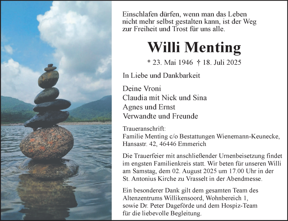 Hier finden Sie alle Traueranzeigen aus der Zeitung, die bisher für Willi Menting erschienen sind. Weitere Traueranzeigen, die in der Zeitung erscheinen, werden hier ebenfalls aufgelistet